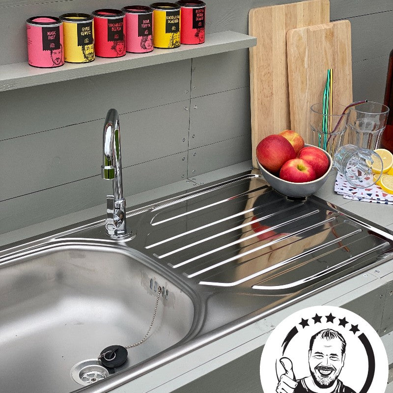 - Wasserhahn: Mit praktischem Gardena-Schlauchanschluss