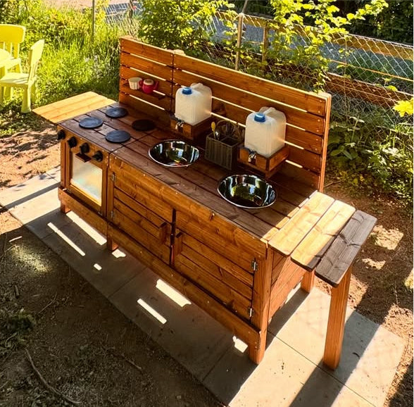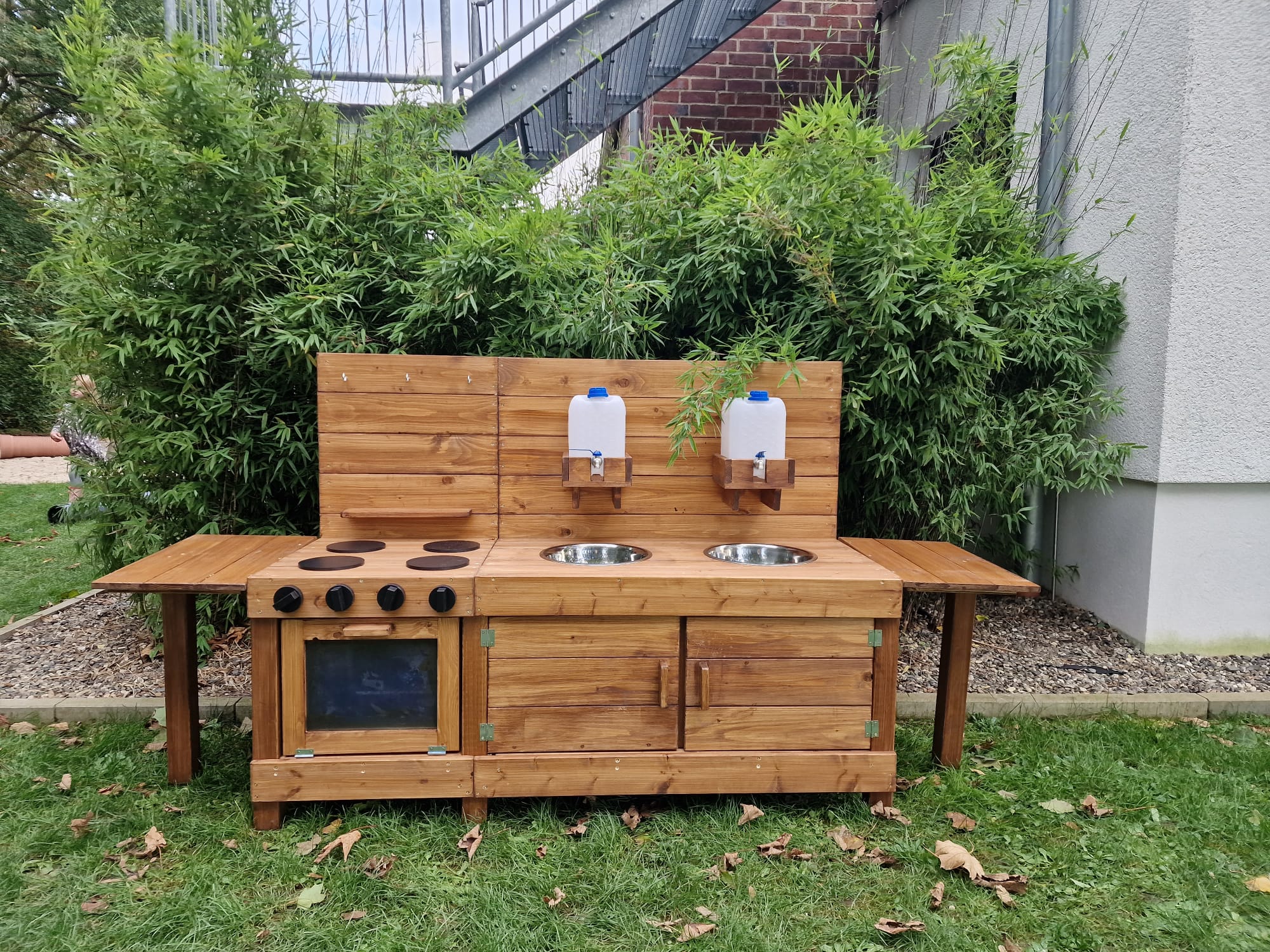 Gefertigt aus hochwertigem Holz und zweimalig lasiert, trotzt die Matschküche Frosch allen Witterungsbedingungen. Wir setzen auf Nachhaltigkeit und verwenden ausschließlich umweltfreundliche Materialien von regionalen Händlern - Kunststoffe werden bewusst vermieden.