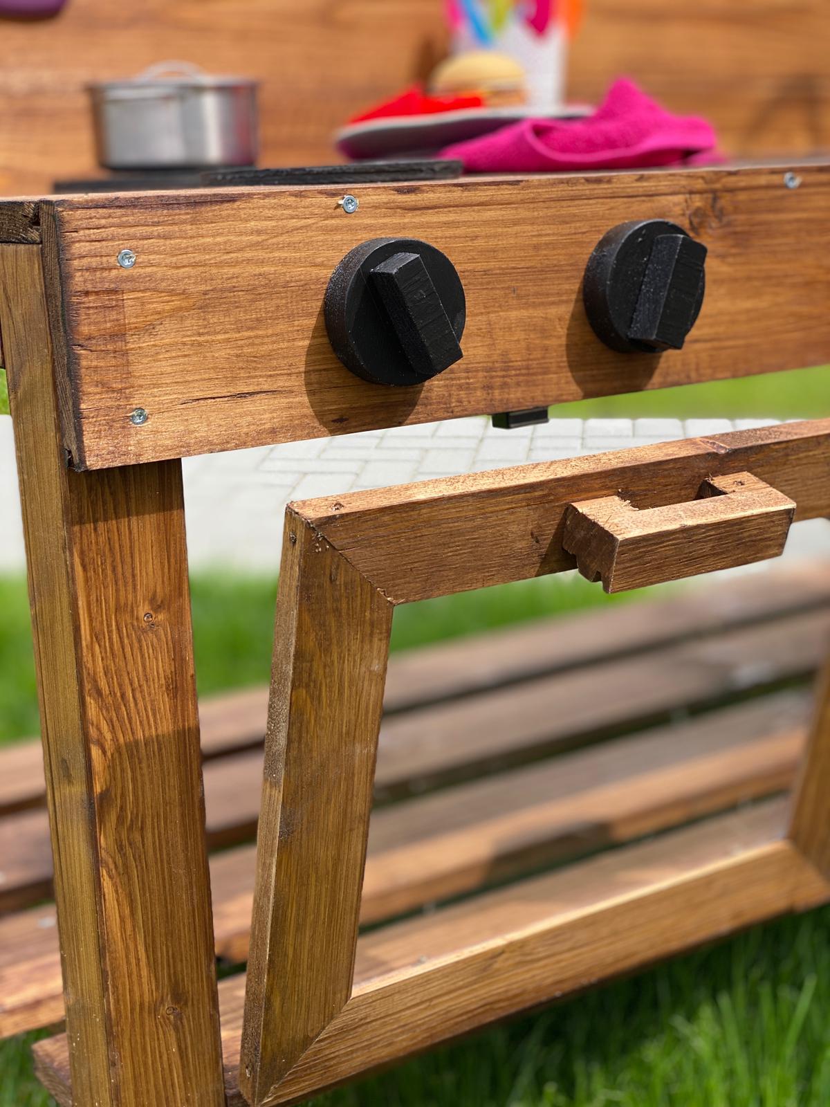 Detail der Matschküche Tilda - hochwertige Holzverarbeitung für Kinder