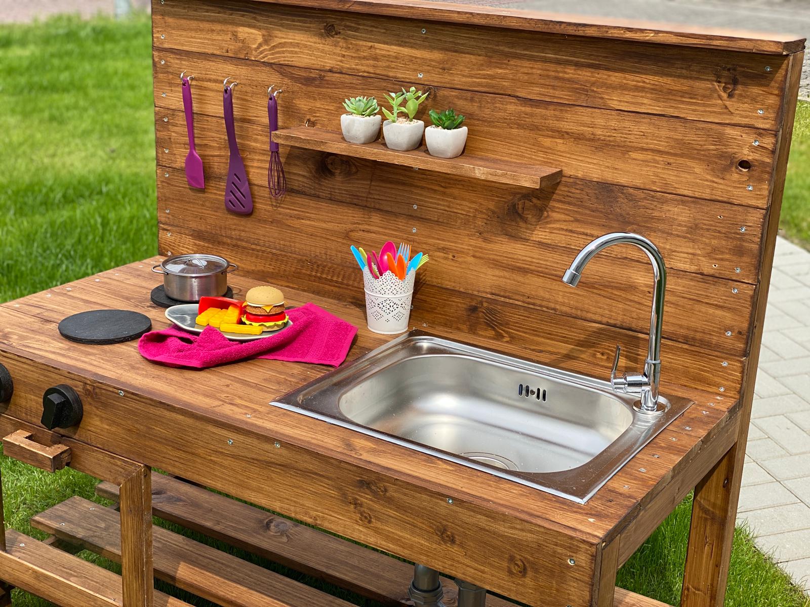 Outdoor-Spielküche Tilda mit Wasserbecken und Arbeitsfläche aus wetterfestem Holz