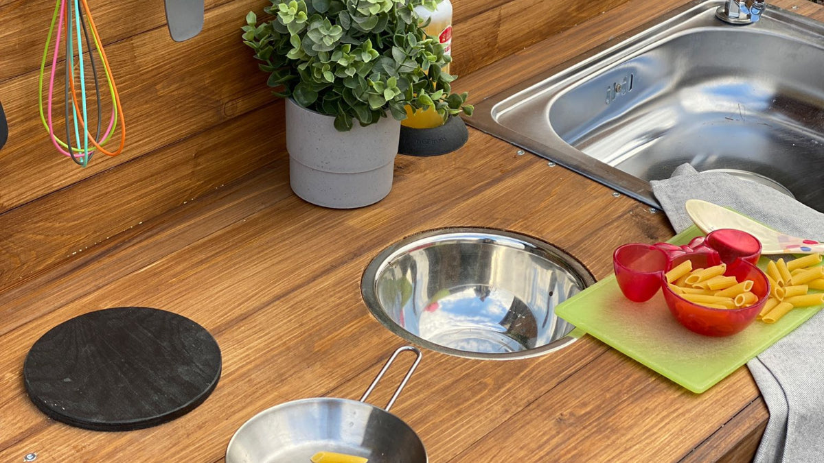 Die Matschküche Frida von Tommywood ist die perfekte nachhaltige Kinderspielküche, die Rollenspiele besonders fördert. Diese hochwertige Outdoor-Küche aus umweltfreundlichem Holz bietet Kindern ab 3 Jahren mit ihrer durchdachten Ausstattung ideale Voraussetzungen für kreative Rollenspiele im Garten.