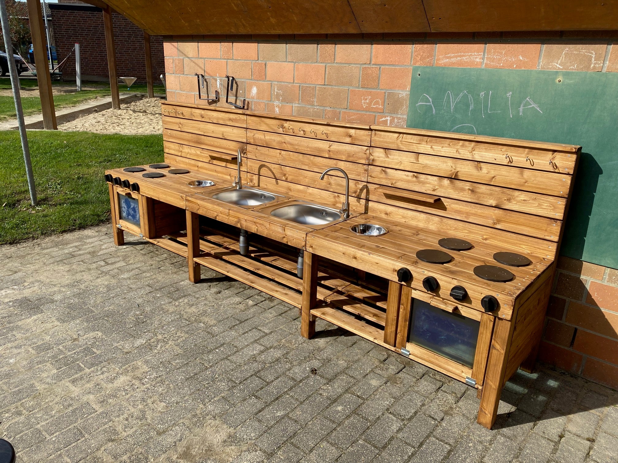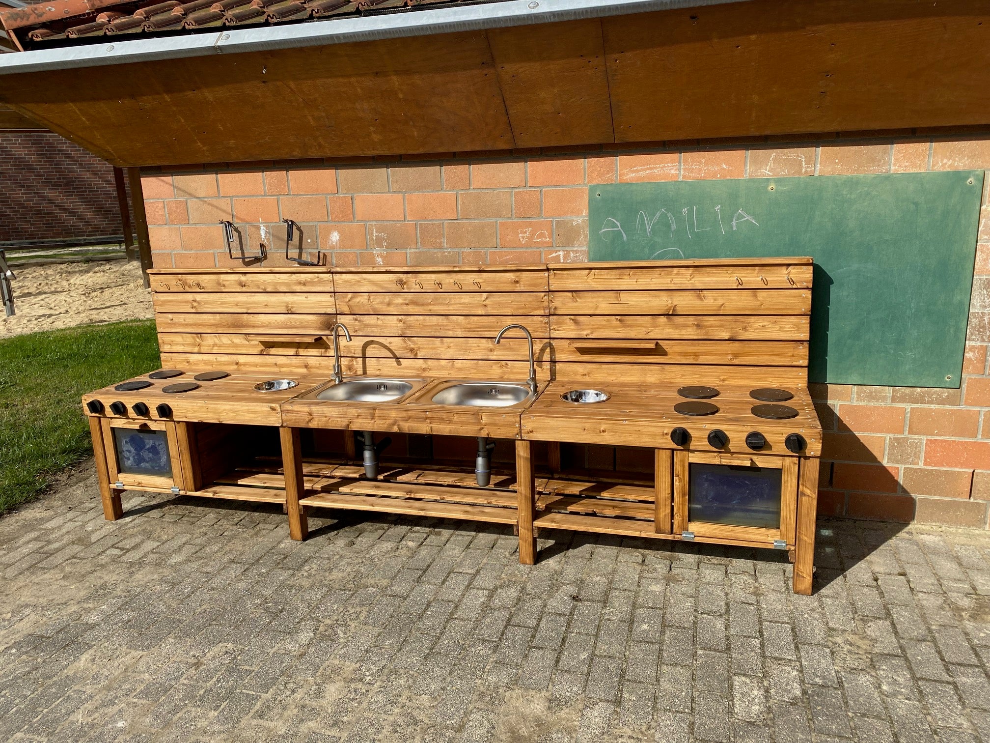 Die Outdoor-Kindergartenküche Vogelnest überzeugt mit ihrer umfangreichen professionellen Ausstattung: