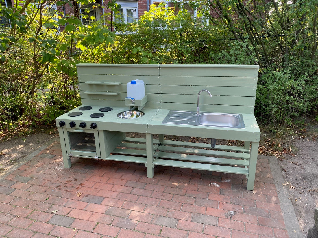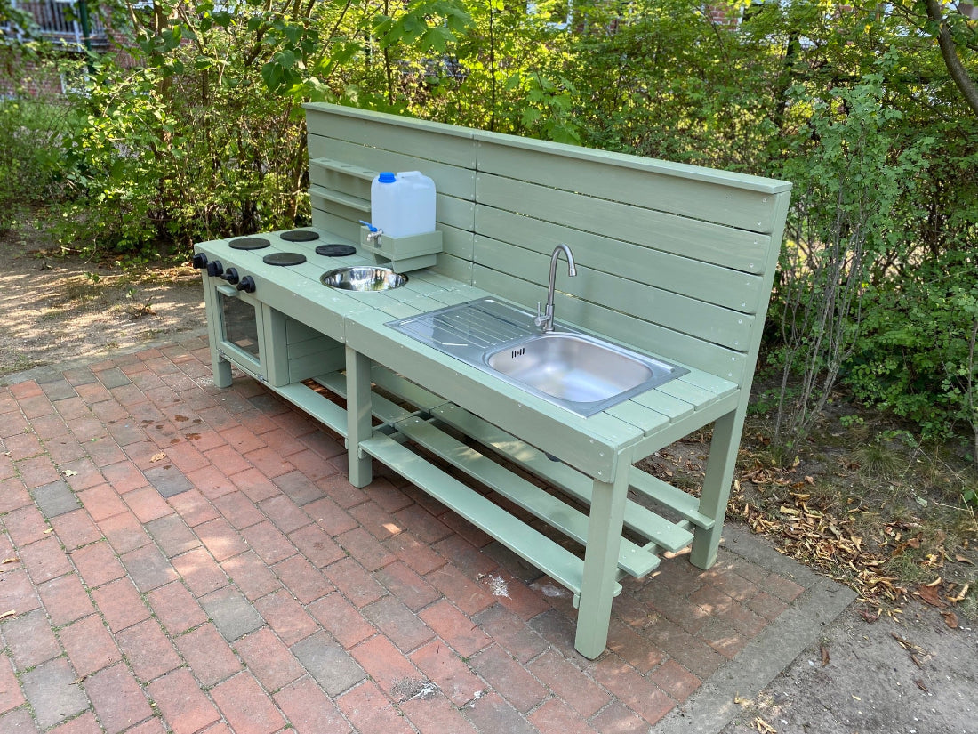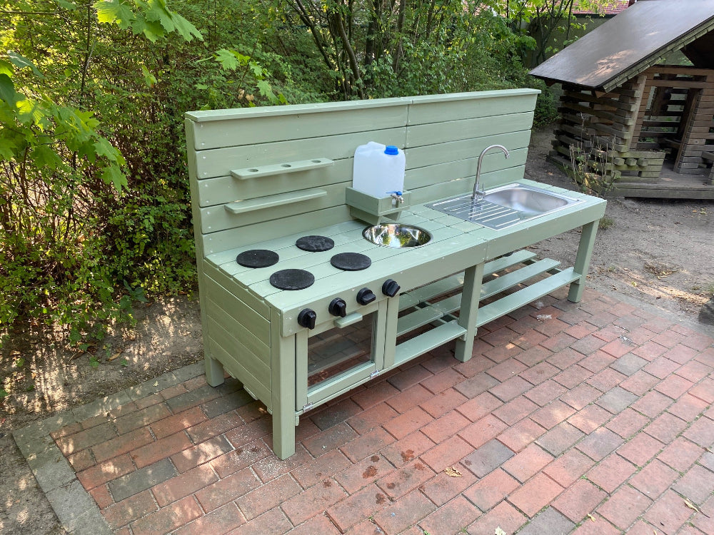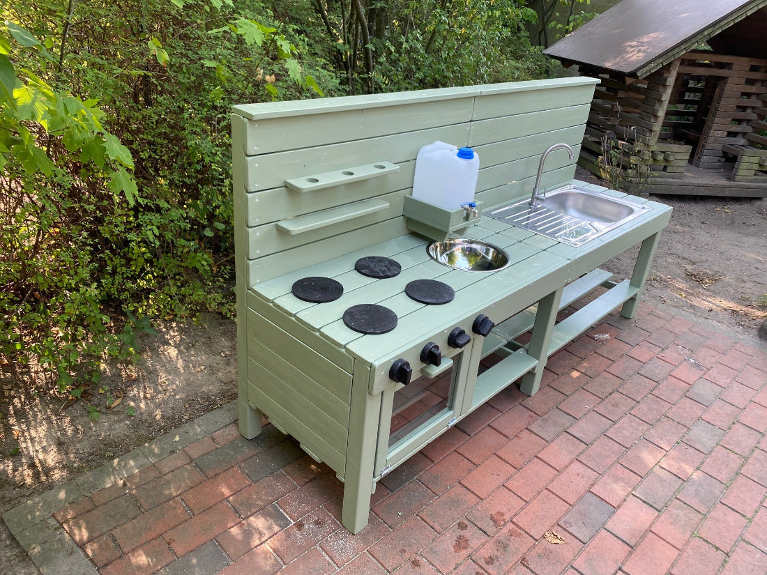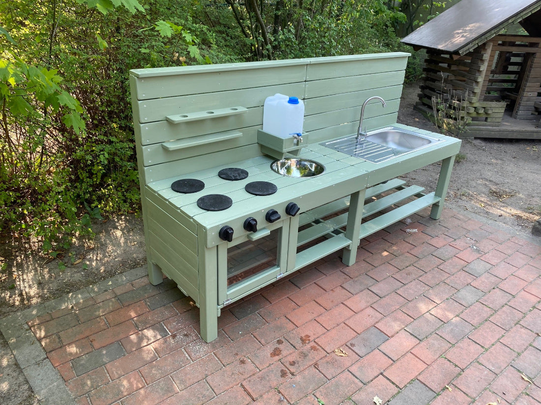 Die XXL Outdoor-Kinderküche Manni überzeugt mit ihrer umfangreichen Ausstattung: